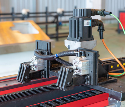 明州智能提出從前面自動拉料,以后 卡為原點計算切割,標準雙卡機的最 后一斷后卡到槍頭的尺寸小于產品成 品尺寸時即可算做成品,實現(xiàn)“零” 尾料,有效提高材料利用率與加工效 率。